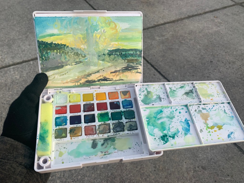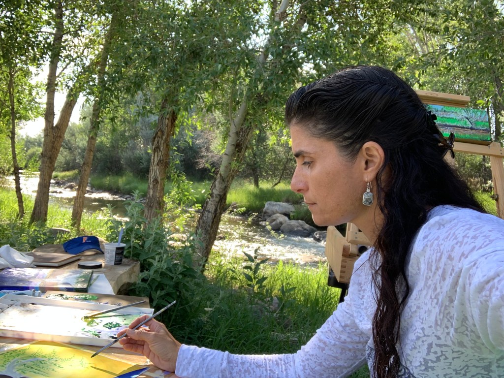 Once I was up with some tea, coffee, and pancake in a cup ready—went outside to set up shop again with my paints and canvases. It is almost impossible to convey how peaceful it has been to just sit and listen to the Clear Creek, drink, and paint at my leisure. I’ve even snuck in a couple of mini Romeo y Juliettas mini cigars to puff my cares into oblivion.