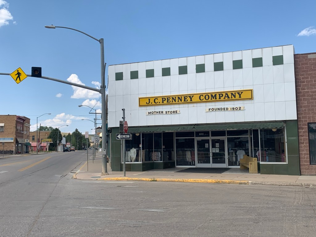 By the end of class I was pulling into Kemmerer and able to take a photo of the J.C. Penney mother flagship store in town and then make my way to a private fossil quarry where I was able to find some slabs of rock with complete fish fossils intact. I got a little woozy driving up and a down a gravel road at 7000 feet to get to the quarry–once I was parked and walking on the ground of that particular quarry, I had a fun time breaking up rock with a metal chisel and hammer along with the bruises and scrapes to boot.