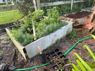 As the dill scent wears off in my senses, I began to look around on bended knee and start to see the other little dills along with cilantro and the occasional collard greens. All three of these plants I’ve had in my garden over the past few years but several feet and in some cases even hundreds of feet away from where I see them now as I get up and walk around in circles. Instinctually the nurturing mother in me bolts for my gardening tools and within minutes I’m bending over on my knees again and digging out these seedlings.